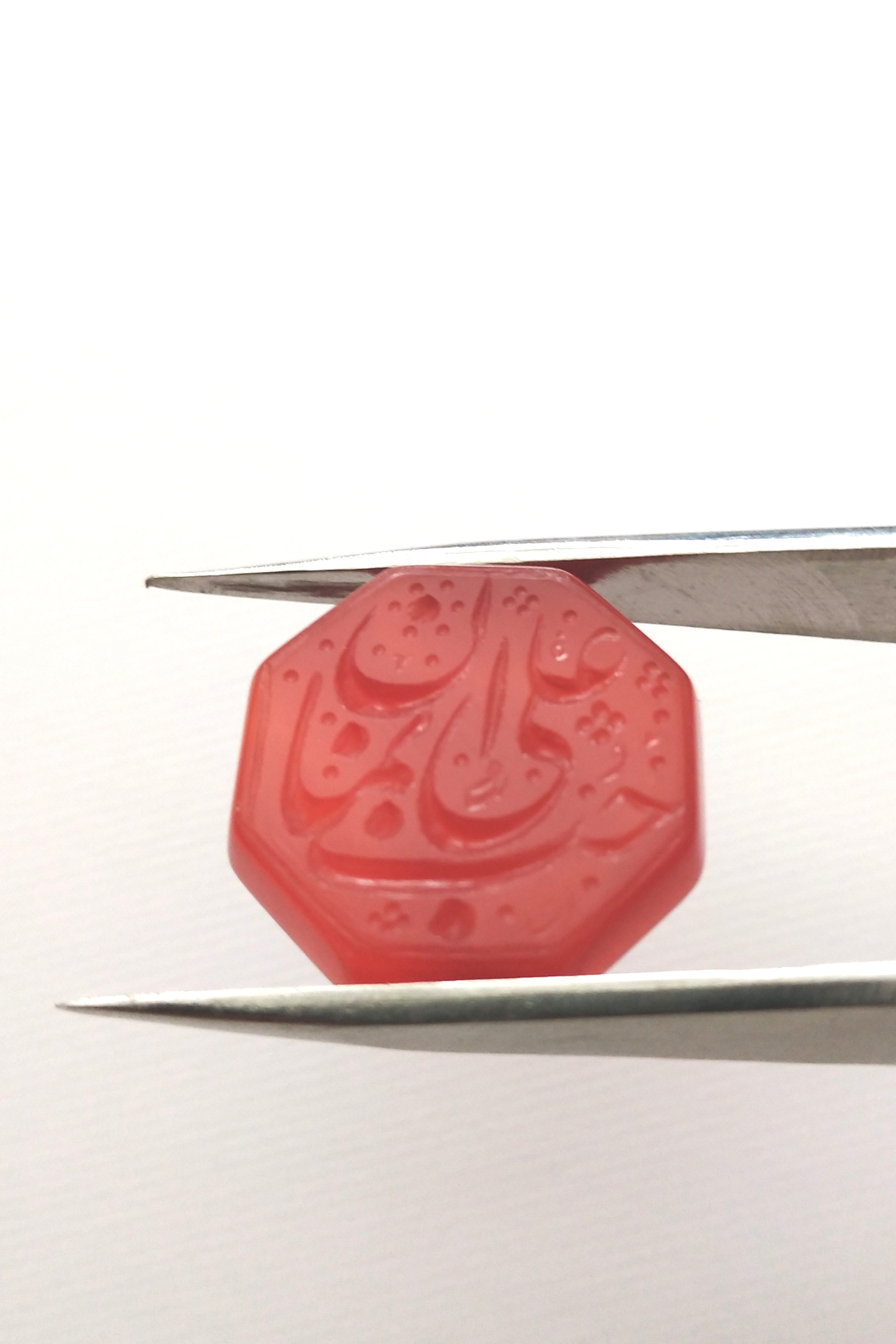 عقیق یمنی حکاکی شده 6 ضلعی خاص و خوش رنگ