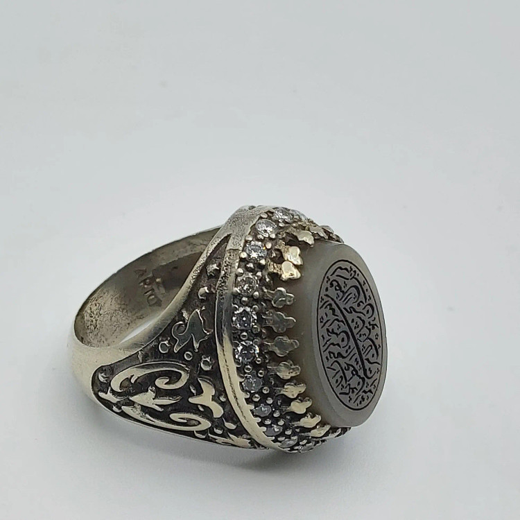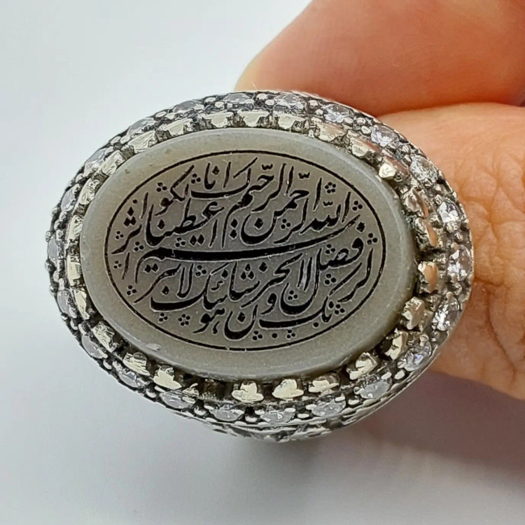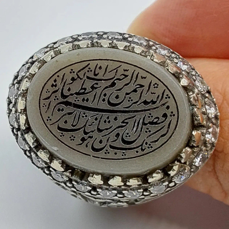انگشتر سنگ یشم با حکاکی بسیار زیبای سوره کوثر . رکاب طلا روسی میباشد .