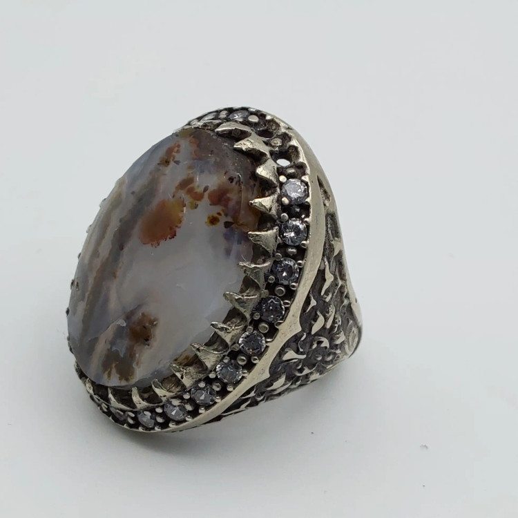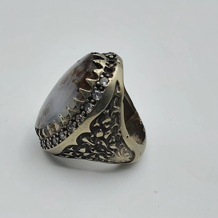 انگشتر مردانه با رکاب طلا روسی و سنگ زینتی عقیق شجر . ۲۰.۹ گرم . سایز ۶۴ . قیمت این محصول ۸۰۰ هزار تومان