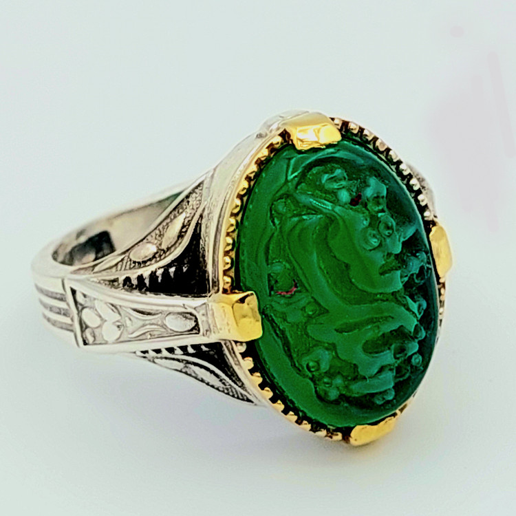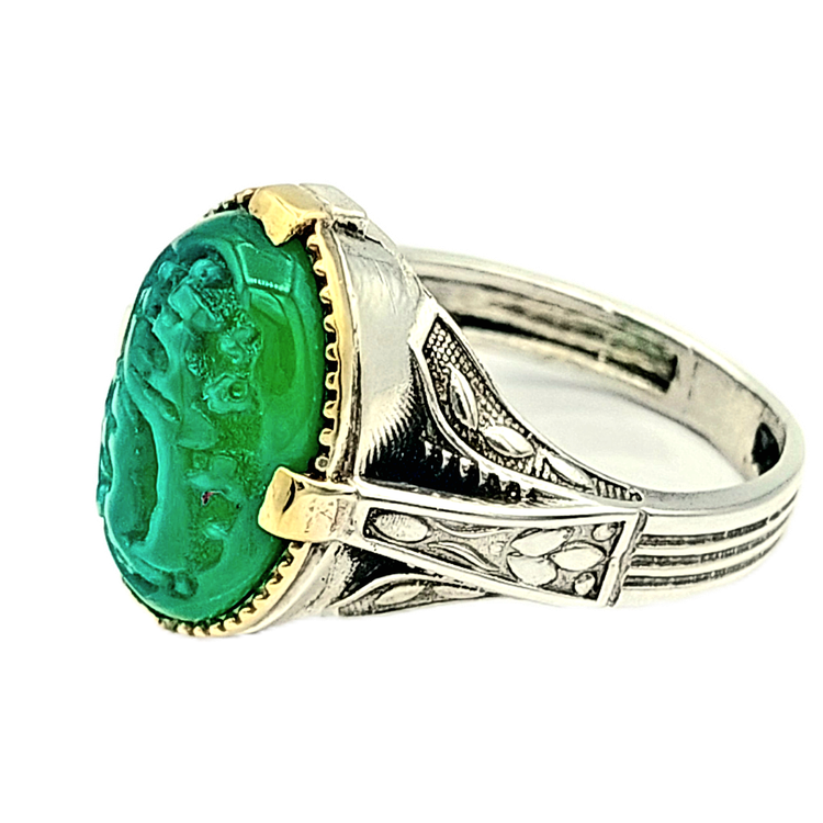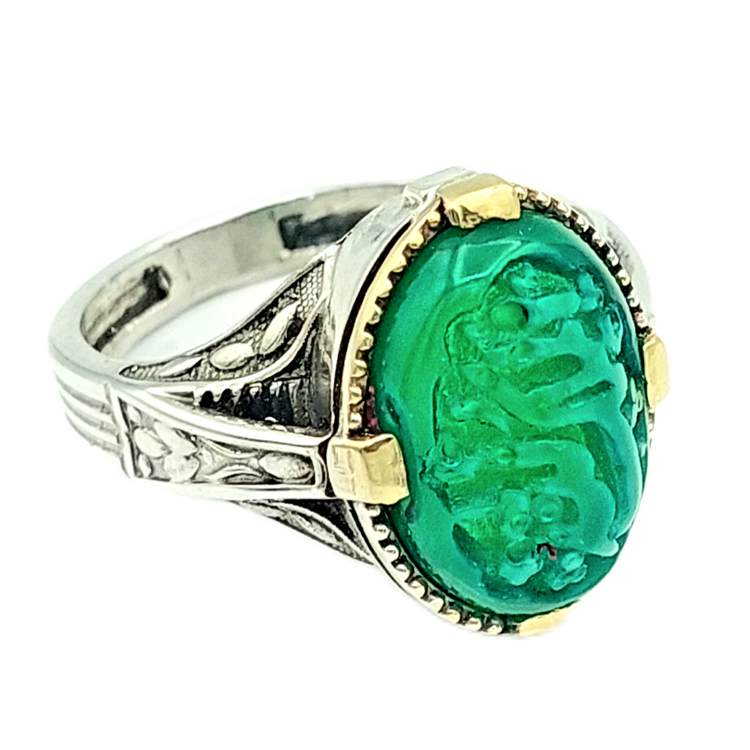 انگشتر باسنگ قیمتی کهربا حکاکی شده کد x381